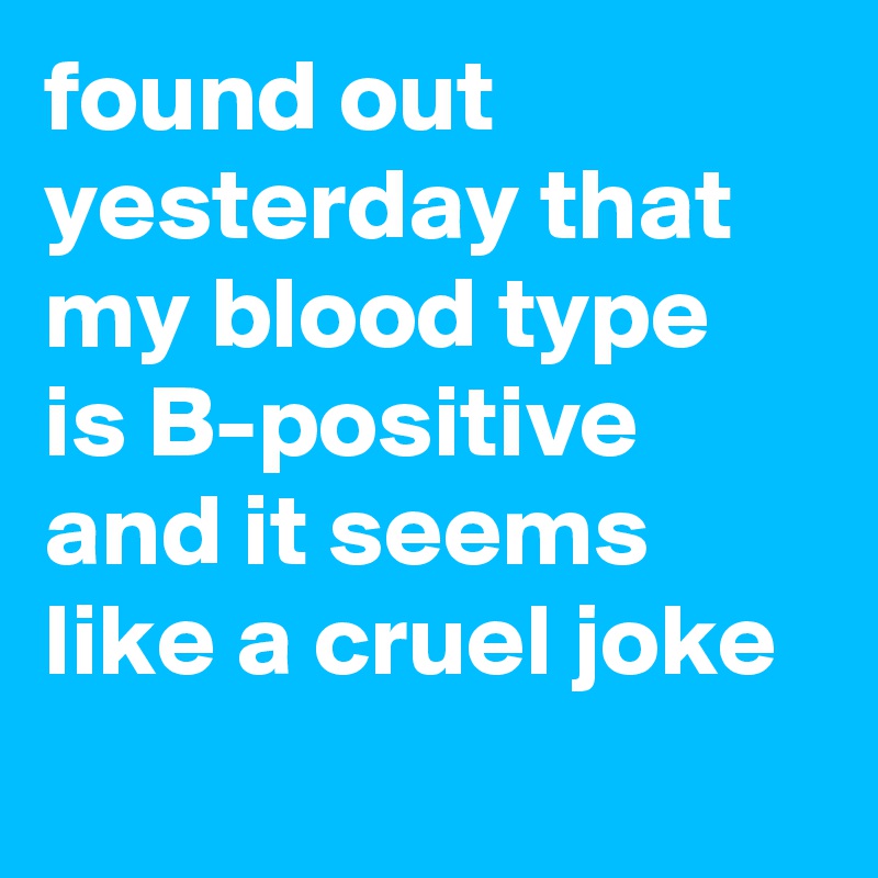 B-Negative is a great little Joke. Two vampires walked into a bar and called for the bartender. Blood Type Word Play Jokes. My dad died when we couldnt remember his blood type. I can find some blood somewhere. Absolutely hilarious blood type jokes. This Joke Already Won. A pastor a priest and a rabbit walk into a blood bank and the nurse asks what blood type they are. In memory of my father who died of blood loss because sadly no one could figure out his blood type.